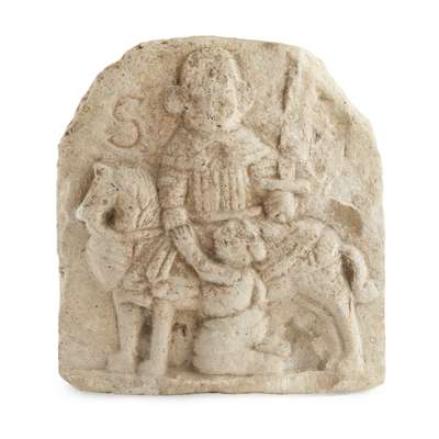 CARVED LIMESTONE PANEL OF SAINT MARTIN OF TOURS