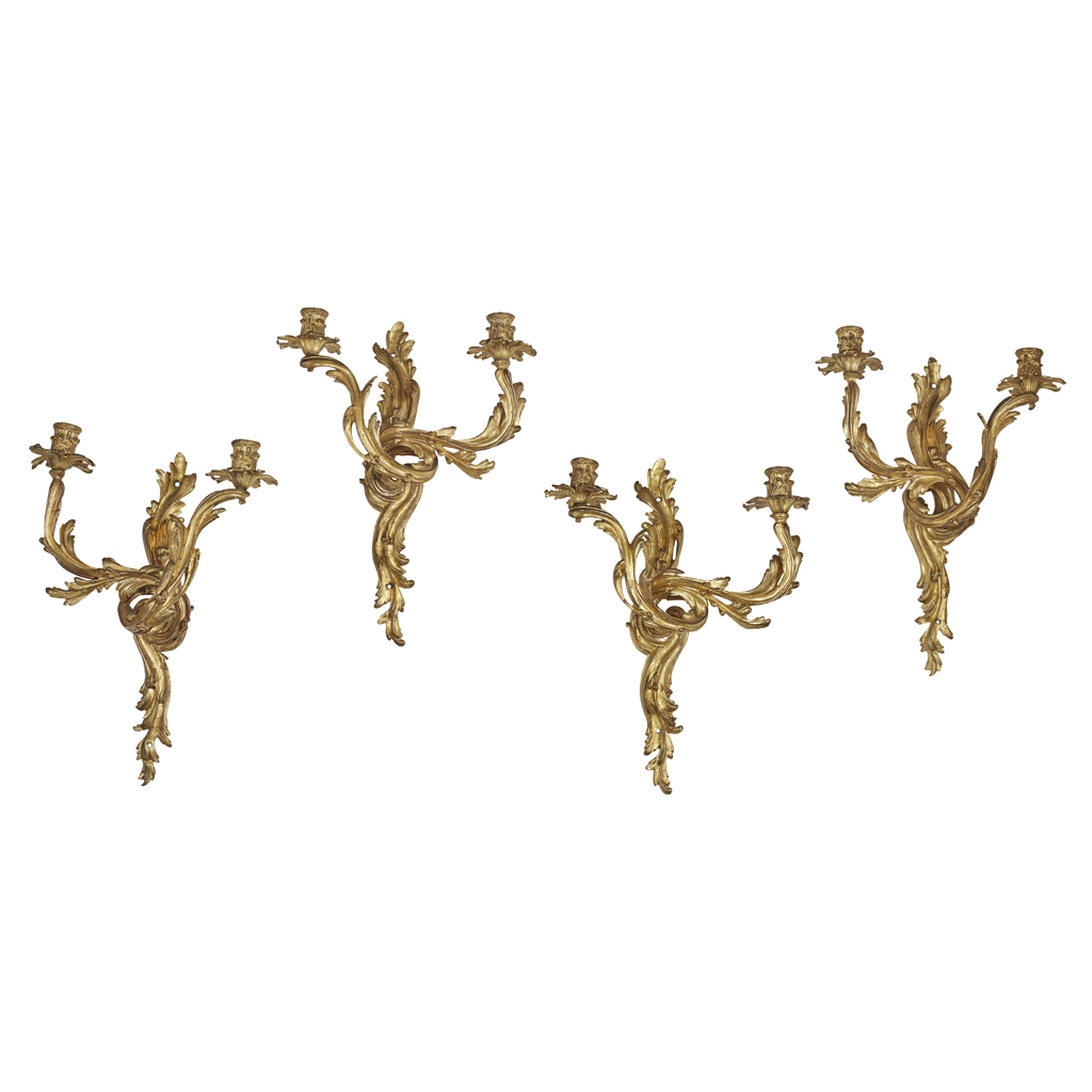SET OF FOUR FRENCH GILT BRONZE WALL LIGHTS