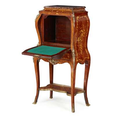 FRENCH KINGWOOD, MARQUETRY, AND VERNIS MARTIN BOMBE SECRETAIRE
