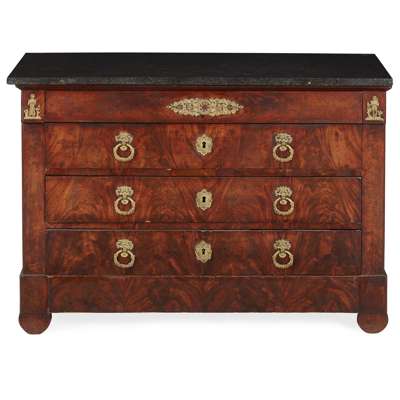 FRENCH RESTORATION MAHOGANY SLATE TOP COMMODE