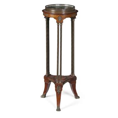 FRENCH EMPIRE STYLE MAHOGANY, MARBLE AND PATINATED METAL GUERIDON