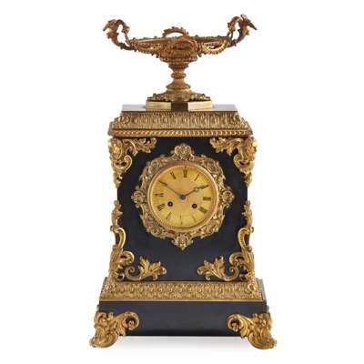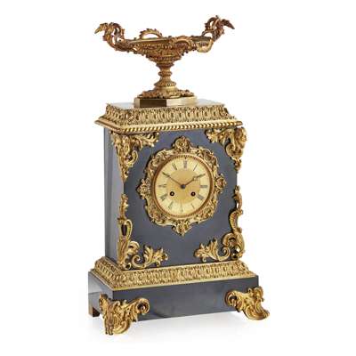 LARGE FRENCH SLATE GILT BRONZE MOUNTED MANTEL CLOCK