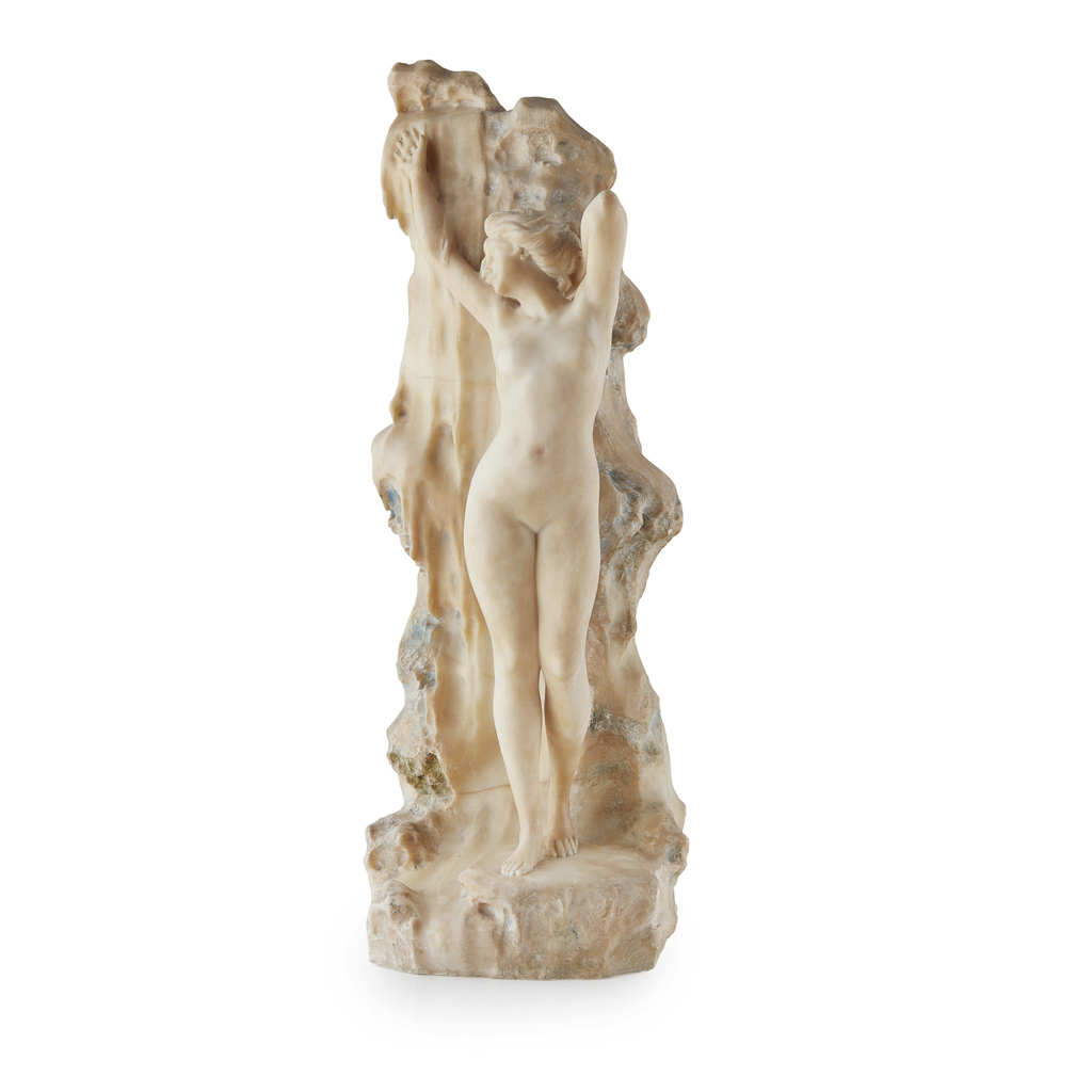 modelled as a nude young woman, standing against a waterfall, signed A. LUCHINI