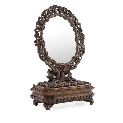 ANGLO-INDIAN CARVED TOILET MIRROR