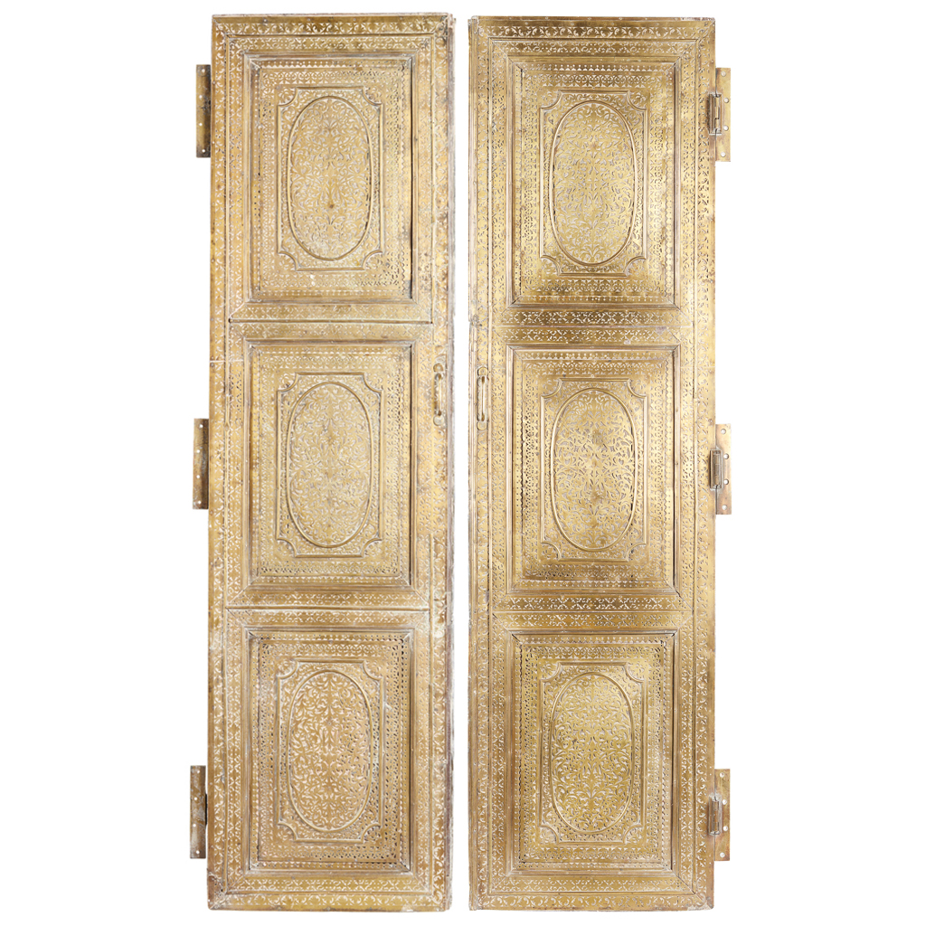 PAIR OF INDIAN BRASS FILIGREE DOORS