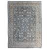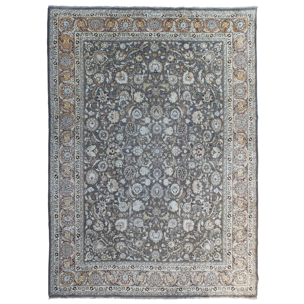 the grey field with allover foliate vine and palmette pattern, within similar rust border, signature to one end