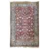 the red field with all over animal-filled palmette and foliate pattern, within light blue palmette and vine border