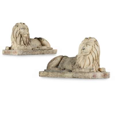 PAIR OF SCOTTISH FIRECLAY LIONS, ATTRIBUTED TO GARNKIRK