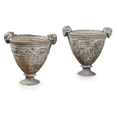 PAIR OF LEAD GARDEN URNS