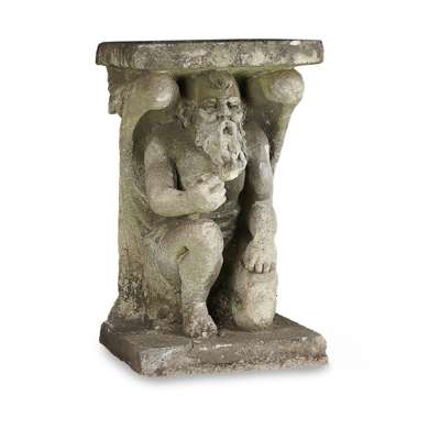 previously the base for a sundial, the kneeling figure supporting a square platform with a circular recess and raised on a square plinth base