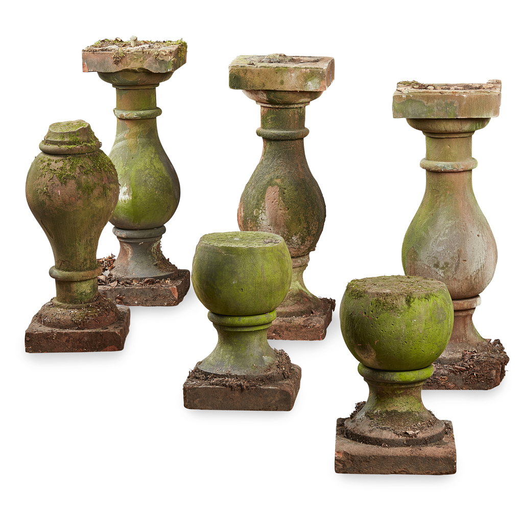 GROUP OF RED SANDSTONE ARCHITECTURAL BALUSTRADE COMPONENTS