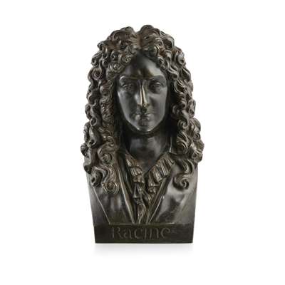 bronze bust, dark brown patina, inscribed RACINE and CHARDIGNY/ 1854, with indistinct oval foundry marks for Paris