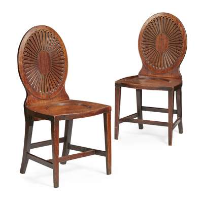 PAIR OF GEORGE III ADAM STYLE MAHOGANY HALL CHAIRS