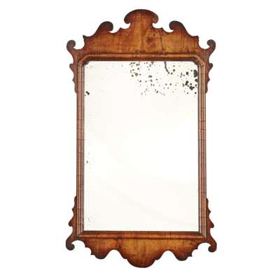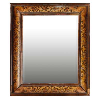 WILLIAM AND MARY WALNUT AND MARQUETRY MIRROR
