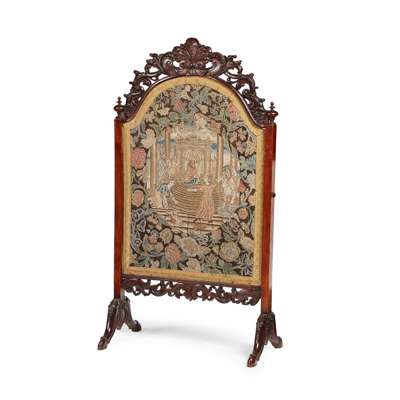 WILLIAM AND MARY STYLE WALNUT AND NEEDLEWORK FIRE SCREEN