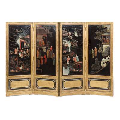 SET OF FOUR POLYCHROME LACQUER PANELS