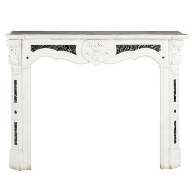 GEORGIAN STYLE CARVED WHITE STATUARY MARBLE AND VERDE ANTICO CHIMNEYPIECE