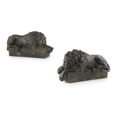 PAIR OF PATINATED BRONZE 'CANOVA' LIONS