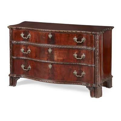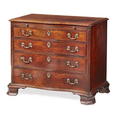 LATE GEORGE III MAHOGANY SERPENTINE CHEST OF DRAWERS
