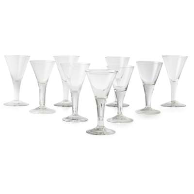 NEAR SET OF NINE LARGE GEORGIAN WINE GLASSES