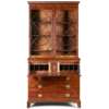 the leaf tip moulded cornice above a pair of astragal glazed doors opening to adjustable shelves; the projecting base with a secretaire drawer fitted with pigeon holes, drawers, and a leather insert, over three further long graduated drawers, raised on bracket feet