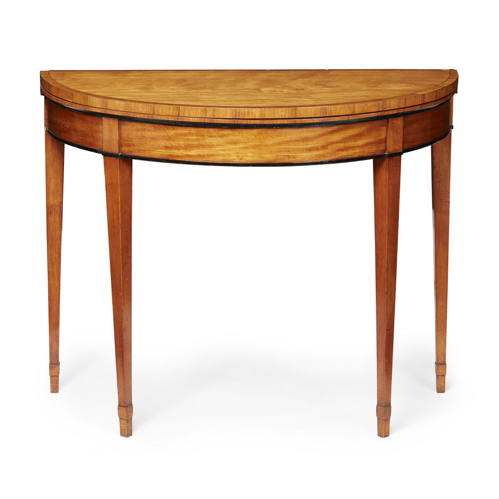 GEORGE III SATINWOOD AND EBONISED DEMILUNE TEA TABLE