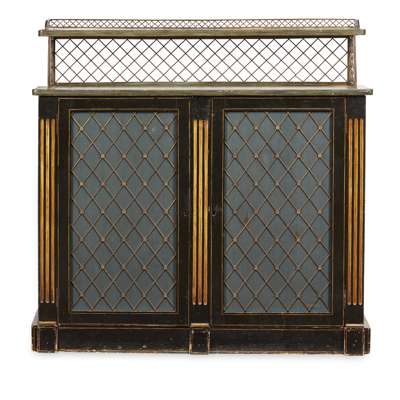 REGENCY EBONISED AND PARCEL GILT BRASS MOUNTED CHIFFONIER