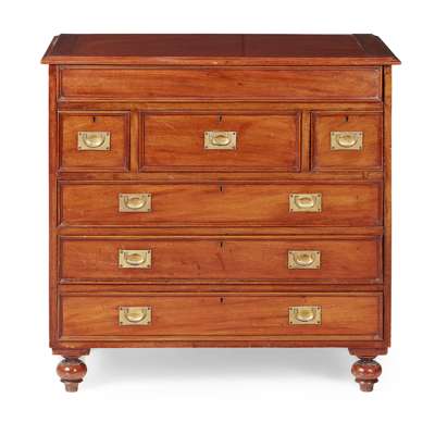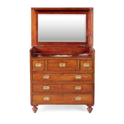LATE REGENCY MAHOGANY CAMPAIGN WASHSTAND CHEST OF DRAWERS