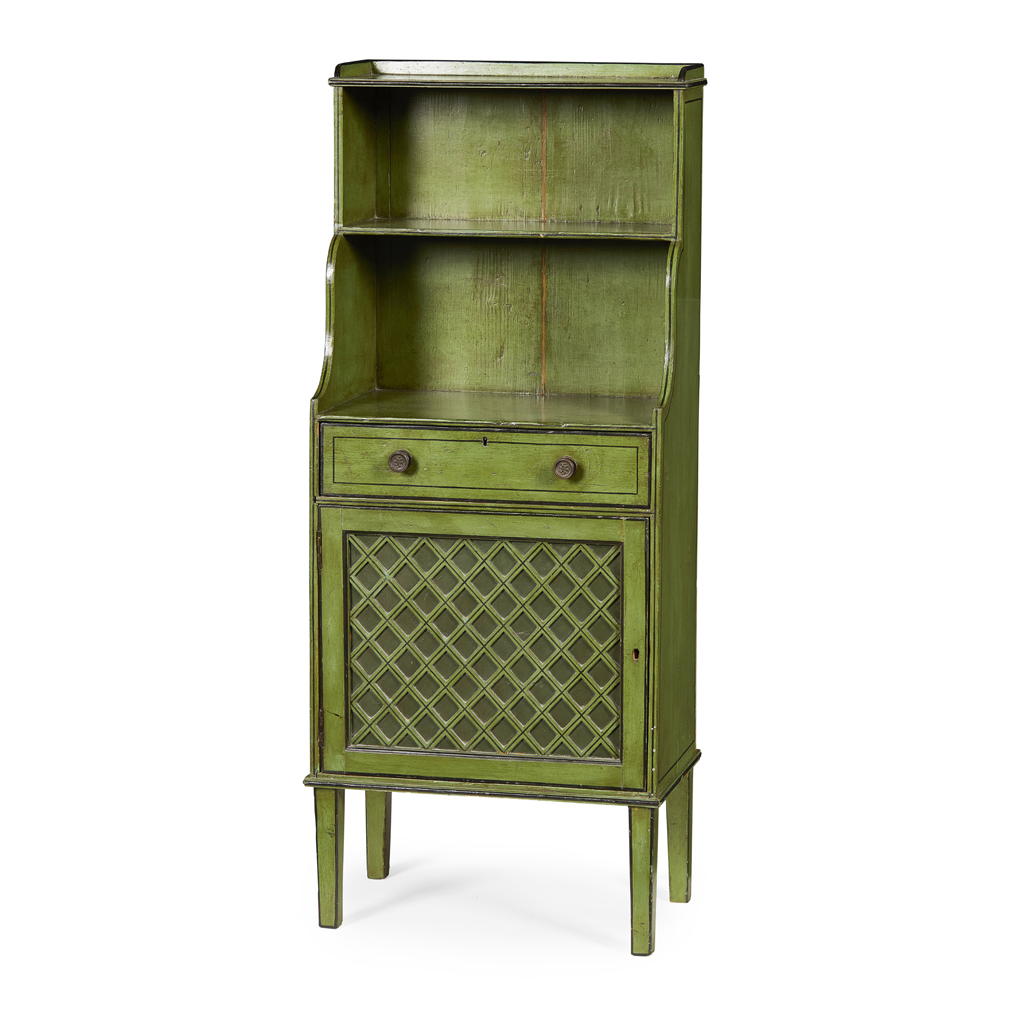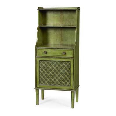 REGENCY GREEN PAINTED PINE BOOKCASE CABINET