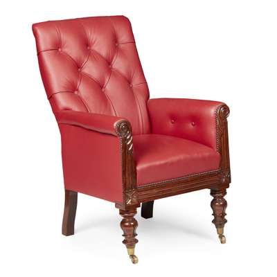 GEORGE IV RED LEATHER AND MAHOGANY ARMCHAIR
