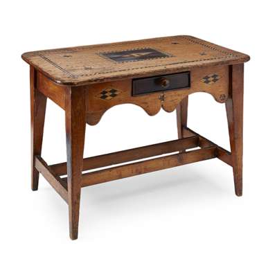 MINIATURE FRUITWOOD AND PARQUETRY TABLE