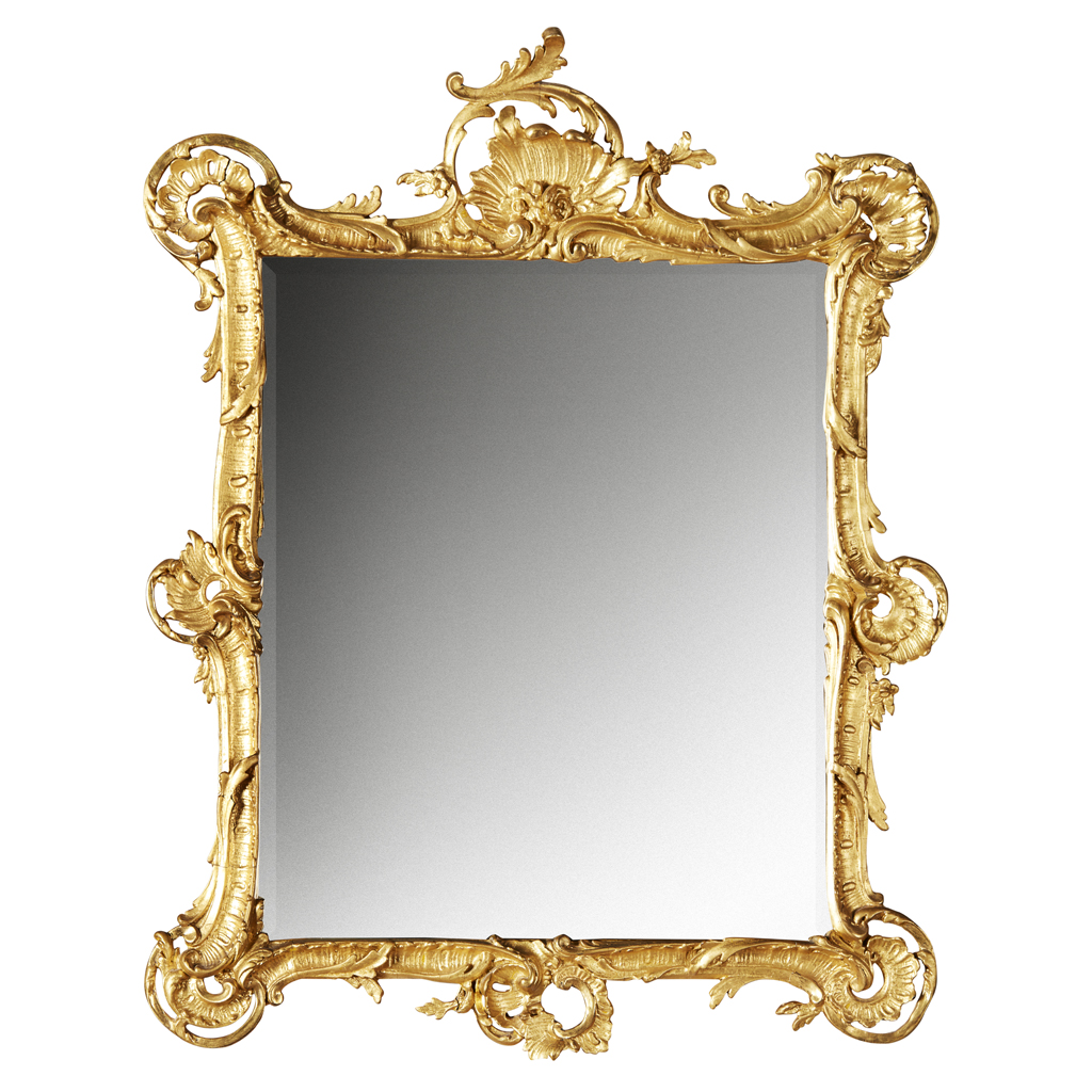 the rectangular bevelled mirror plate in a rococo style frame with pierced auricles, acanthus scrolls and a shell cresting