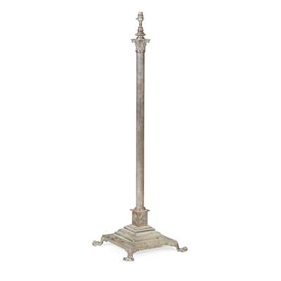 in the form of a reeded Corinthian column on a stepped square base with paw feet