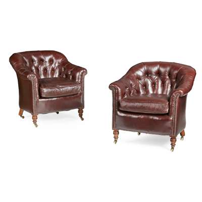PAIR OF HOWARD & SONS LEATHER CLUB ARMCHAIRS