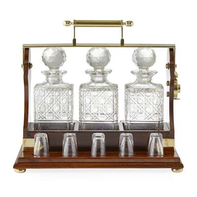 LATE VICTORIAN BETJEMANN'S MAHOGANY TANTALUS WITH GLASSES