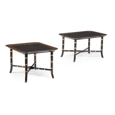 PAIR OF BLACK LACQUER TRAY TOP LOW TABLES
