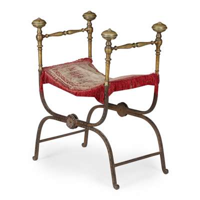 CONTINENTAL IRON AND BRASS CURULE CHAIR