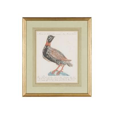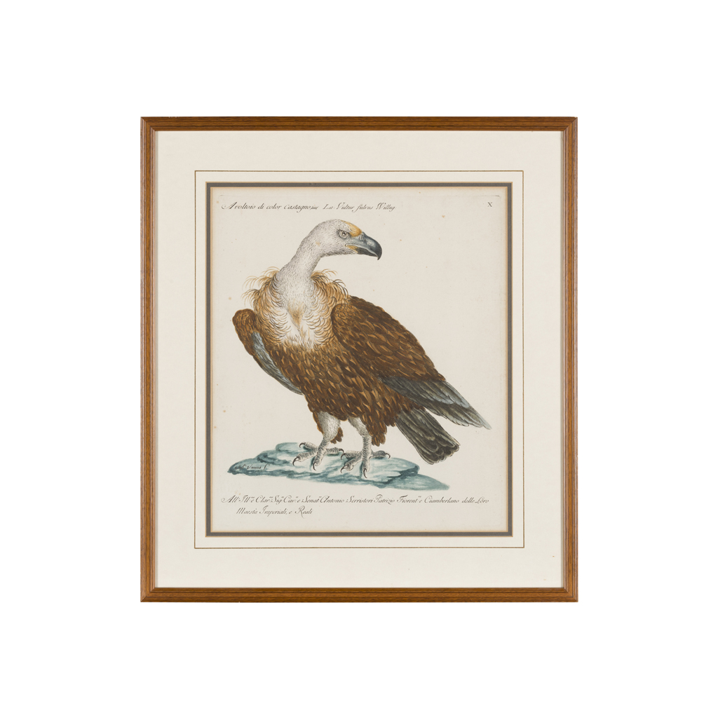from (Francesco) Saverio Manetti, 'Storia naturale degli Uccelli...', [plates VI, X, XXXIX, CV, CXXII, CLII, CLXXXXII, CCIII, CCXIII, CCXLI] , with taxonomical identifications and dedication inscriptions in Latin and Italian, one signed VIOLE. VANNI FC., nine in gilt frames, one in a wood frame (10)