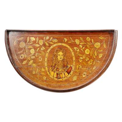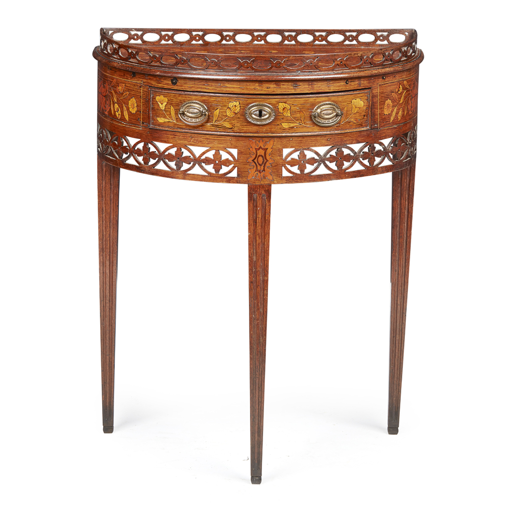 DUTCH OAK AND MARQUETRY DEMILUNE TABLE