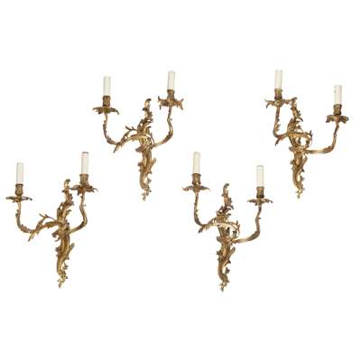 SET OF FOUR LOUIS XV STYLE GILTMETAL WALL LIGHTS