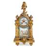 FRENCH GILT METAL AND PORCELAIN MOUNTED MANTEL CLOCK