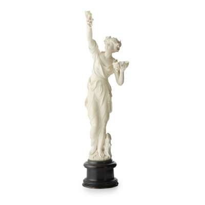 LARGE CONTINENTAL CARVED IVORY FIGURE EMBLEMATIC OF AUTUMN Y