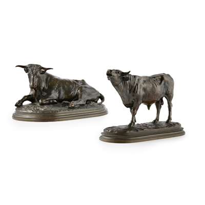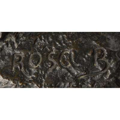 both signed ROSA B to the bases, comprising a recumbent example, base 28.5cm wide; and a baying bull, 15cm high (2)