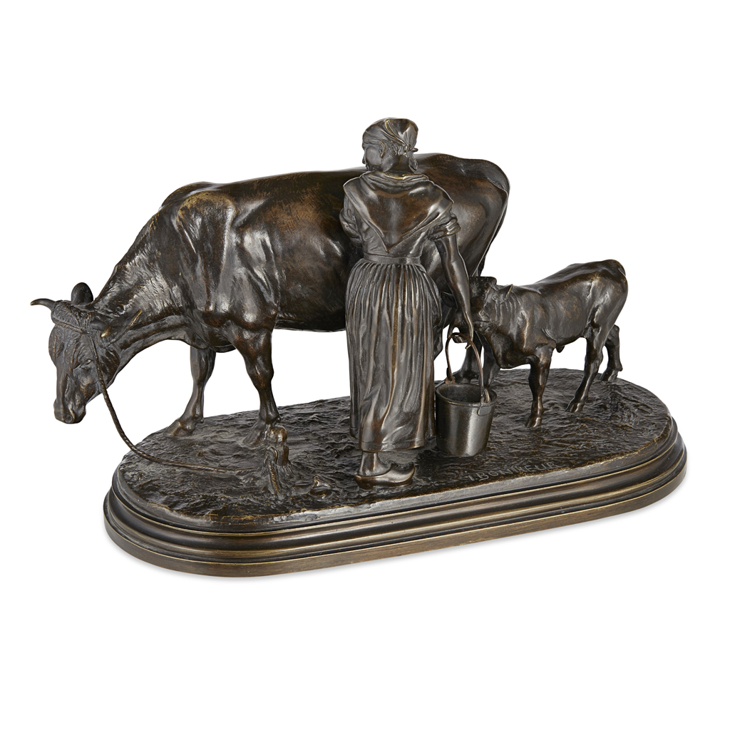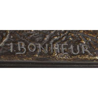 bronze, mid-brown patina, signed I. BONHEUR to the oval base