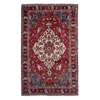 the red field with ivory lozenge medallion, blue spandrels, within burgundy stylised foliate border