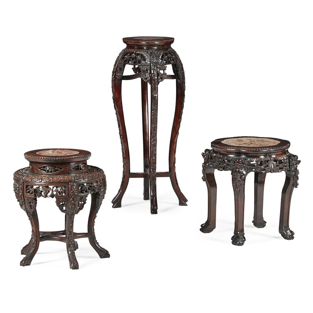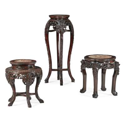 THREE CHINESE CARVED HARDWOOD JARDINIÈRE STANDS