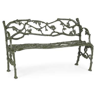 VICTORIAN PAINTED CAST IRON 'OAK, TWIGG AND SERPENT' GARDEN BENCH
