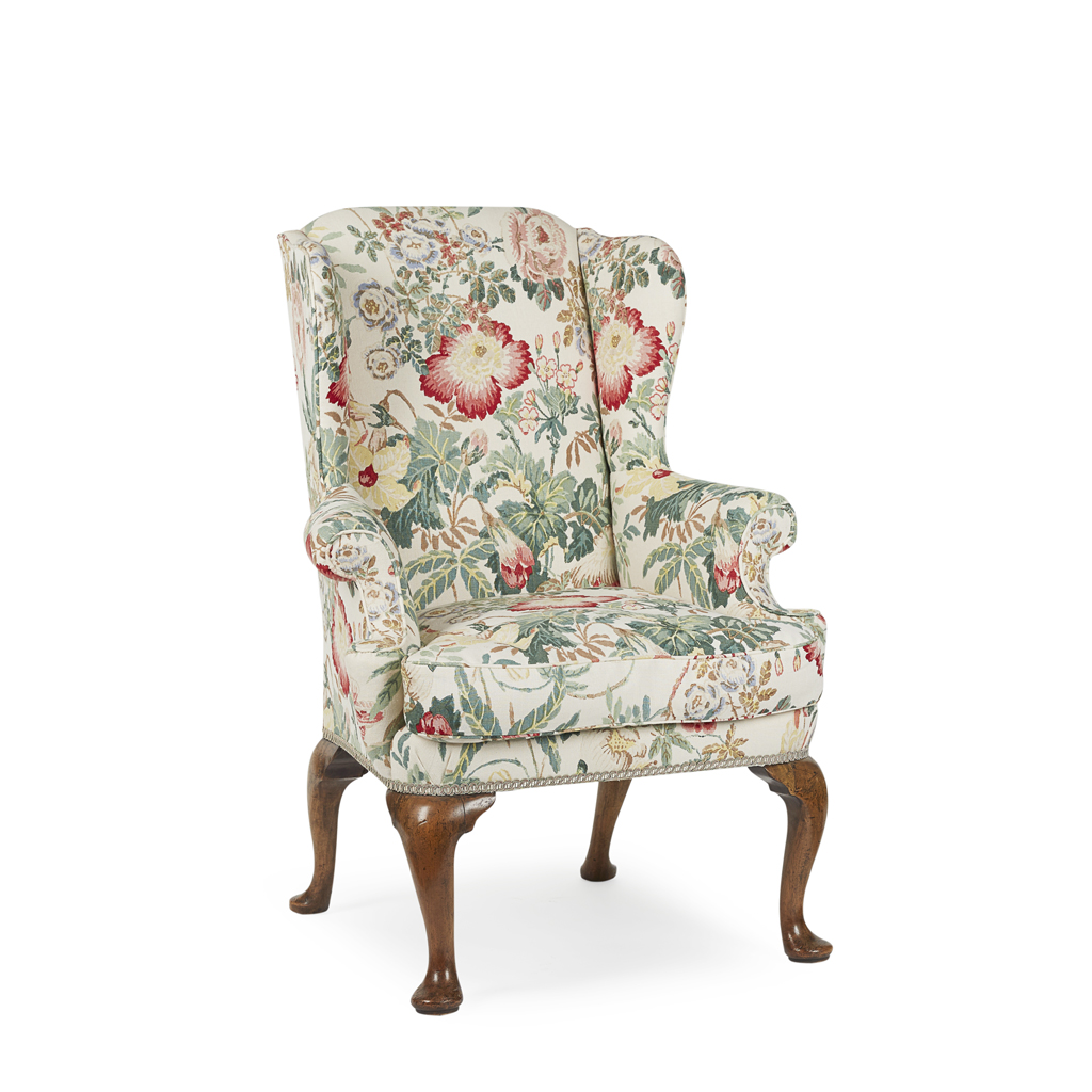 GEORGE II STYLE WALNUT FRAMED WING ARMCHAIR