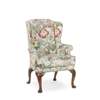 the high slightly arched back and wings above scroll arms and loose cushionseat, raised on cabriole legs with pad feet, later upholstered with floral linen covers