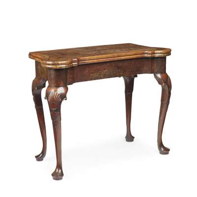 QUEEN ANNE BURR WALNUT FOLDOVER CARD TABLE